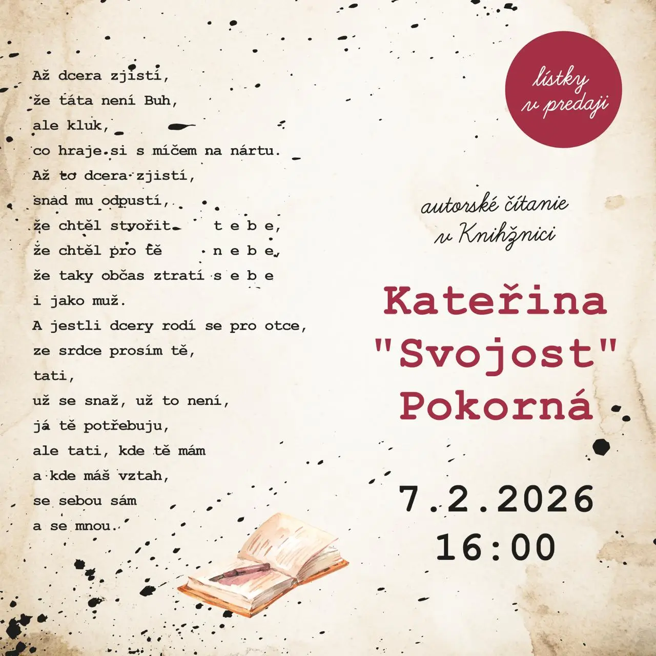 LÍSTKY KÚPITE PRIAMO V NAŠEJ KNIHŽNICI (OBMEDZENÝ POČET MIEST) ALEBO ONLINE A MY VÁM LÍSTOK POŠLEME EMAILOM.